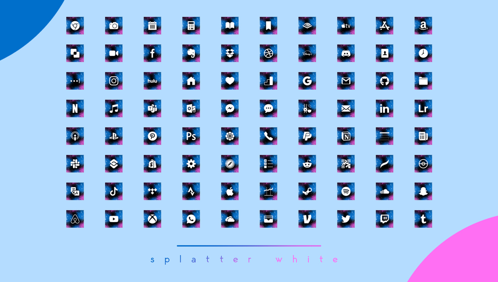 Splatter icon pack comes with 2 different styles. Each set is packed with 80+ icons!